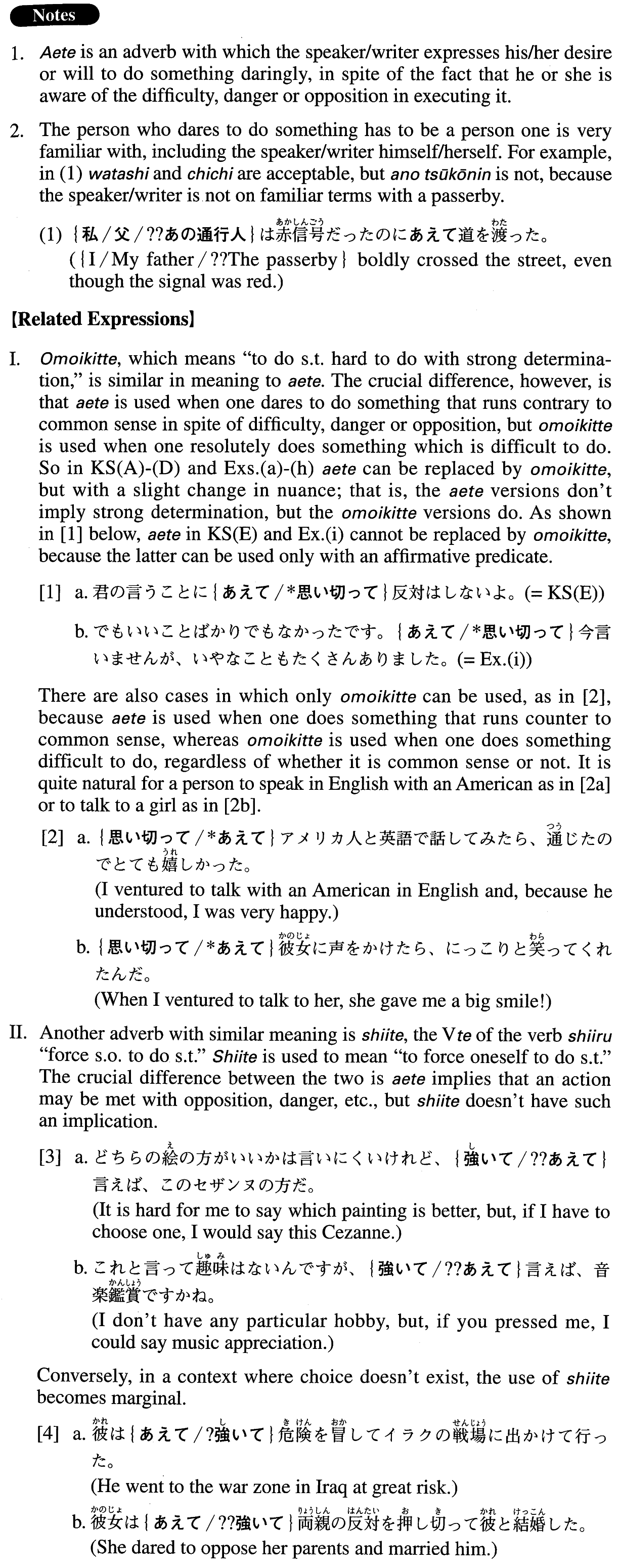 An adverb that expresses the speaker's/writer's desire or will to dare to do s.t. in spite of difficulty, danger or opposition. | Daringly; boldly; dare to~; venture to~; force oneself to~ |