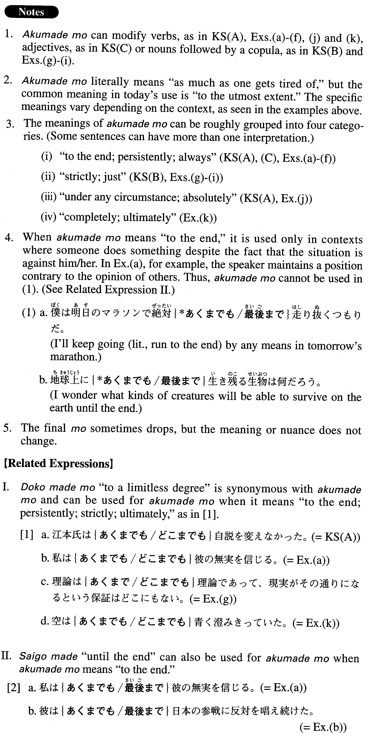 An adverb that represents the idea of "to the utmost degree". | to the end; persistently; insist; strictly; just; under any circumstance; absolutely; never; completely; ultimately |