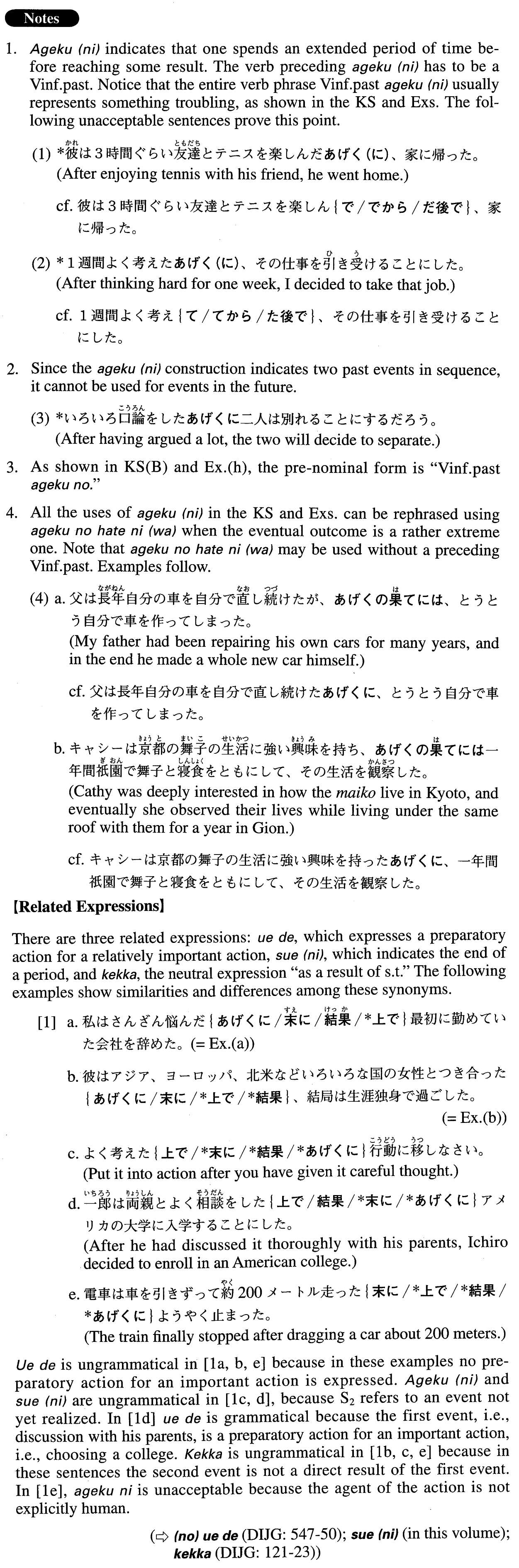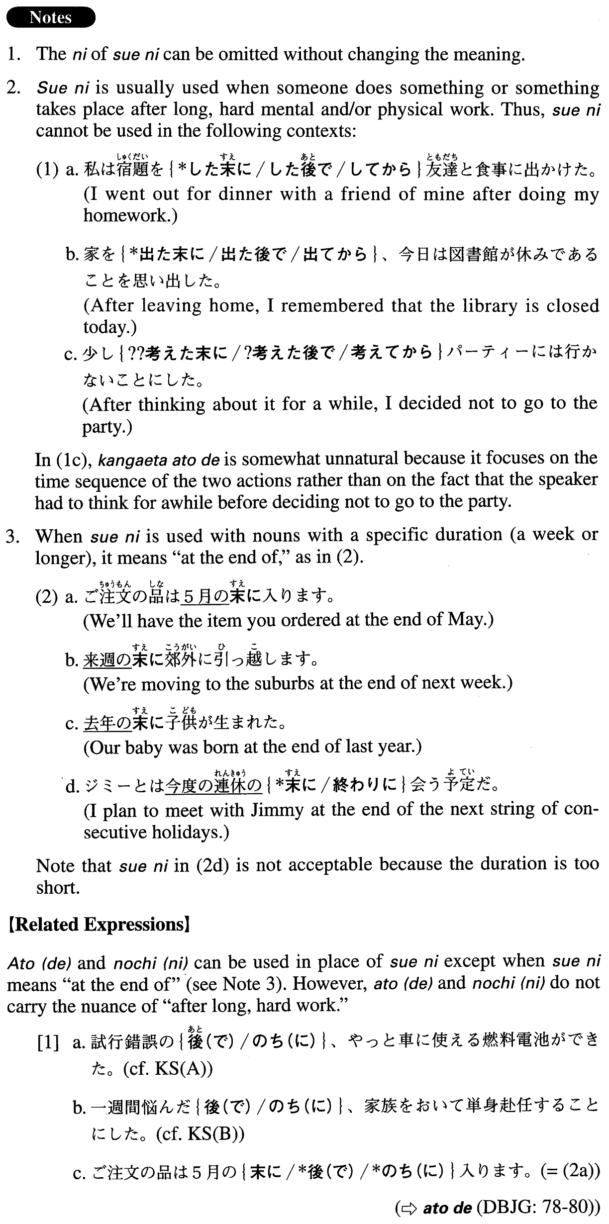【Related Expression: 上で; すえ(に); 結果】 | |