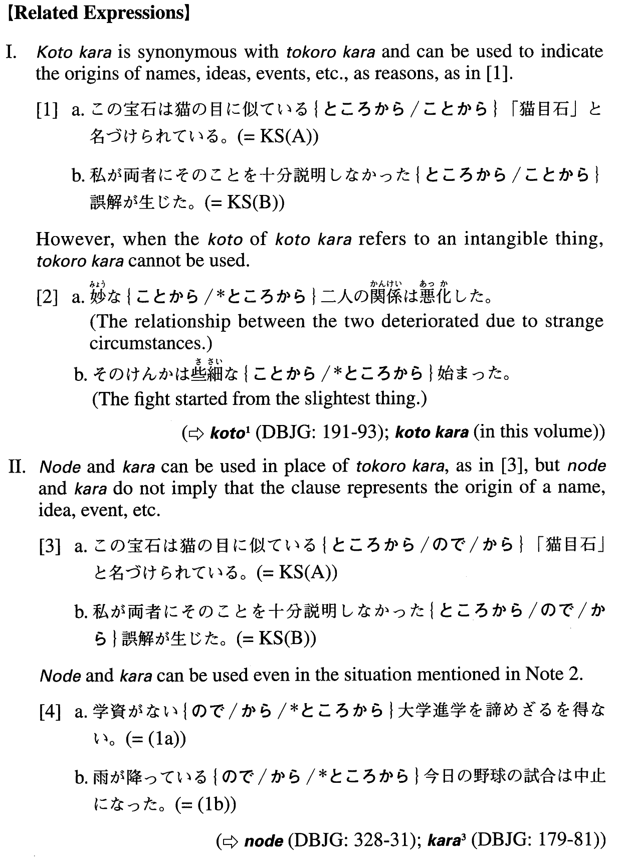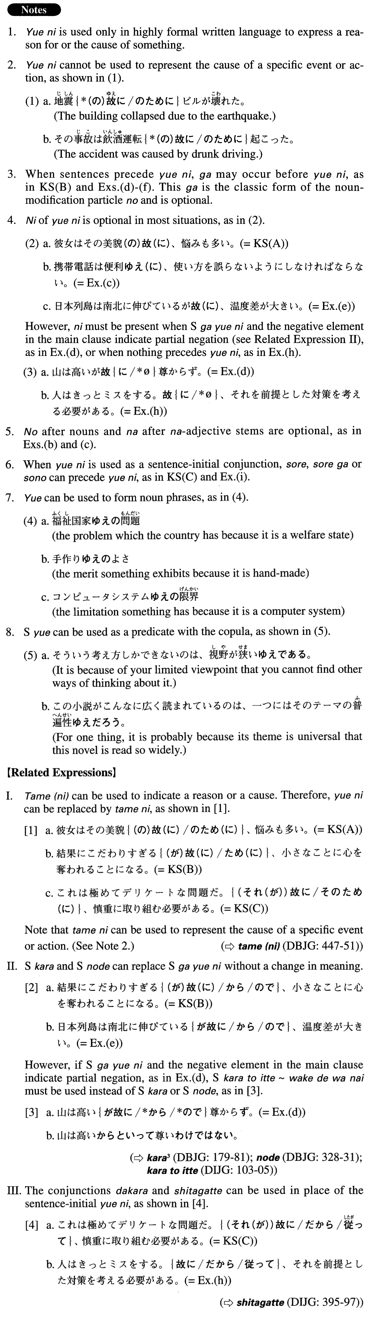 (i){Noun(の)/Adjectiveなstem(な)} | 故(に) | |