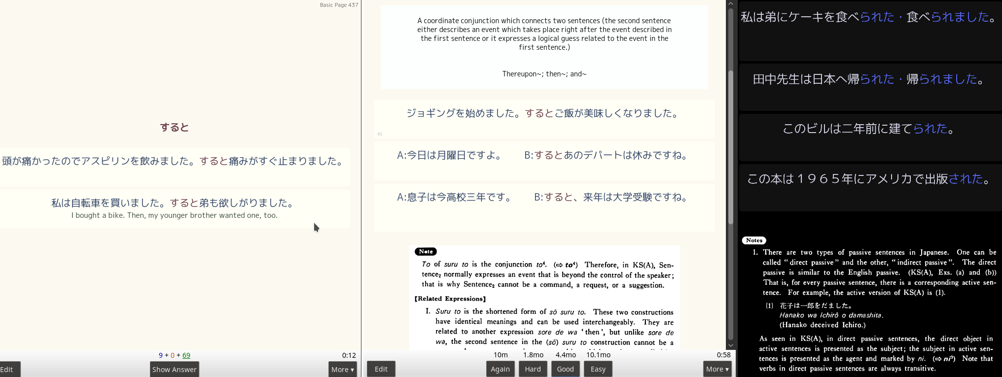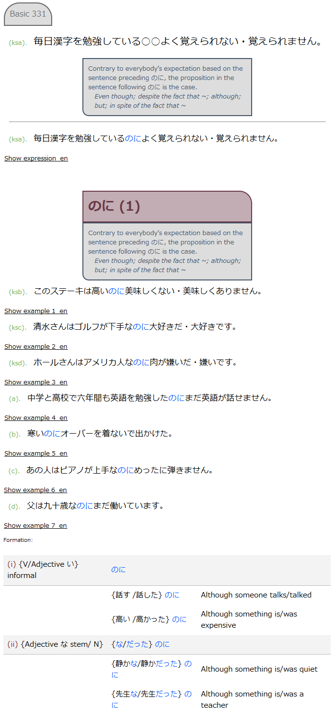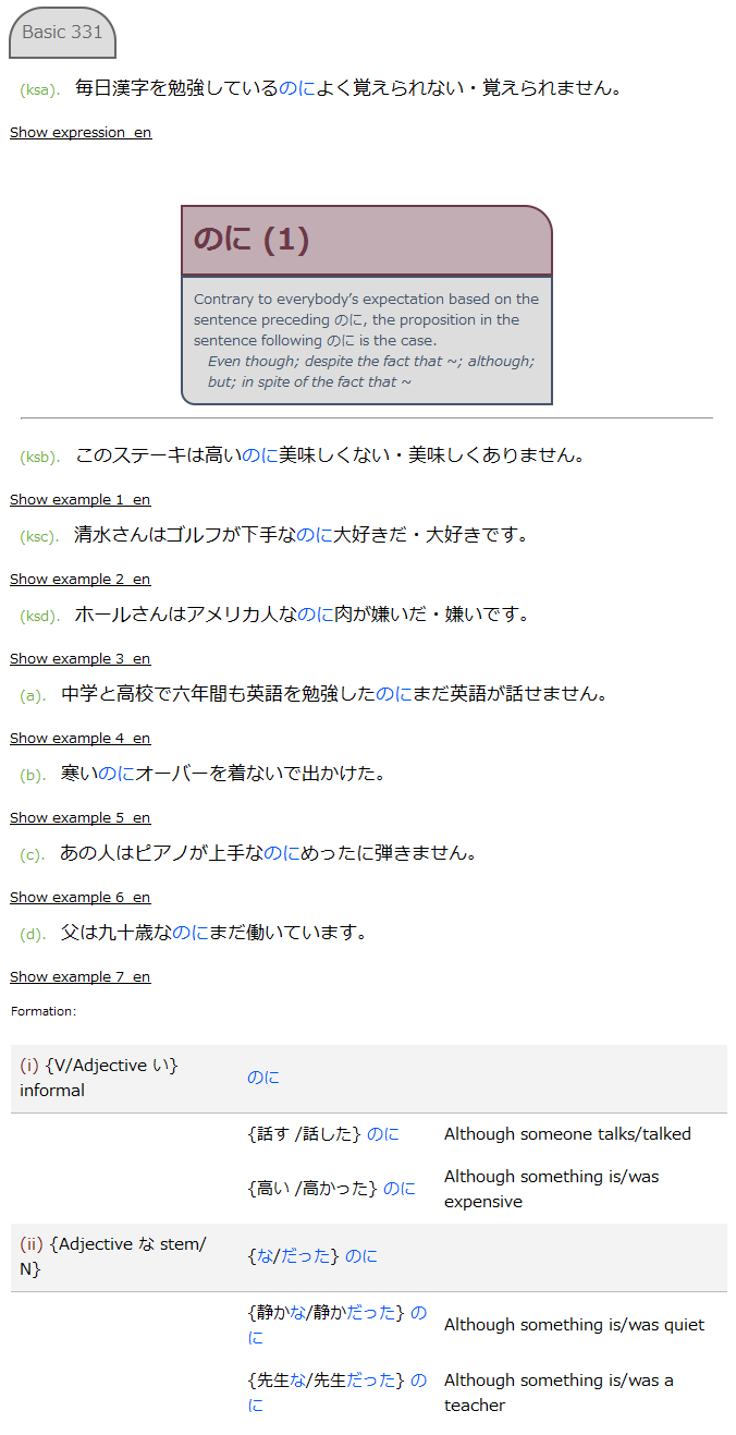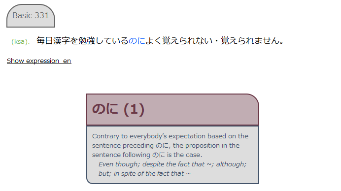 - Recognition: One of the Japanese example sentences is on the front of the card in full. Depending on the style you choose, the grammatical explanation may be on either the front (default) or the back (sentence/random styles below).
