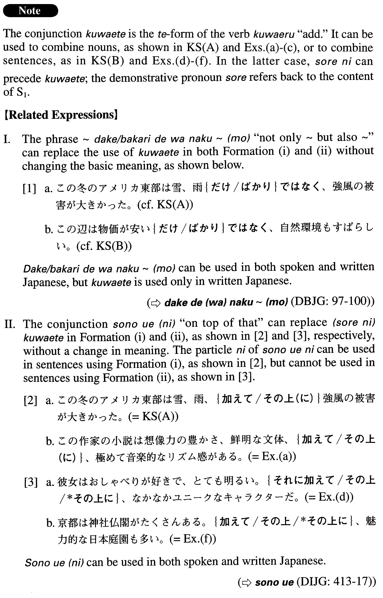 【Related Expression: だけでなく~(も); ばかりでなく~(も); その上(に); 且つ】 | |