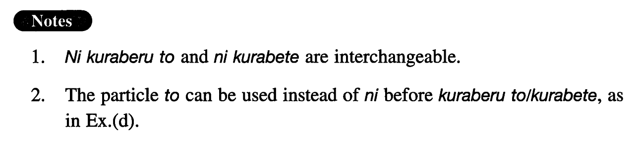 If we compare (it) with/to; comparing (it) with. | Compared with/to; when compared with/to; in comparison to |