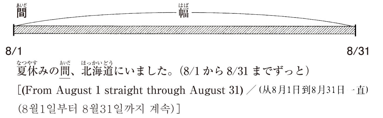 接続 | 〔普通形〕(ナAな/Nの)+間 |