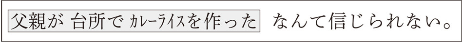 「父親が台所でカレーライスを作った」という事柄に対して、「なんて信じられない」という話者の気持ちを表しているんですね。