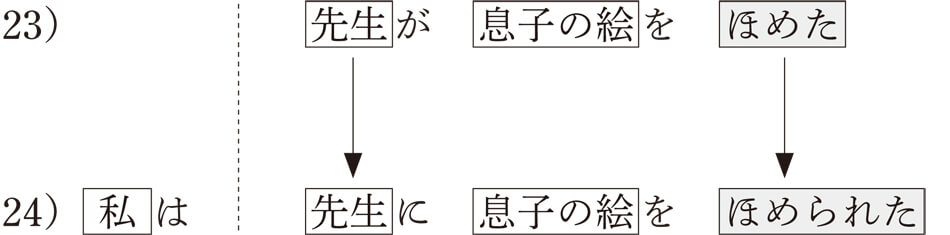 となっていたことでしょう。この場合、1)の文も2)の文も同じ事実を表していますが、誰を主役(主語)にするかによって、異なる形式になっているんですね。