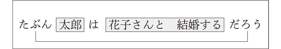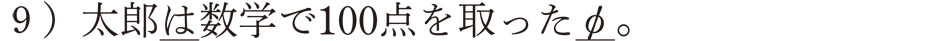 この場合、「太郎が数学で100点を取った」は「~こと」につながり、「驚く」という述語の必須成分「太郎が数学で100点を取ったこと」を形成することになります。したがって文の最後に断定のムードとして発話されたものではないんですね。なお、このような「~こと」の構造については、第8章で詳しく説明します。