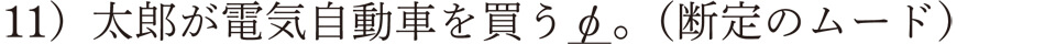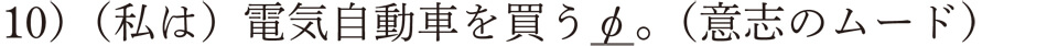 対事的ムードのなかで、「断定」と「意志」のムードはゼロ「~φ」であると言いました。ちょっと理解しにくいかもしれませんが、理論的にはムードが存在するという考え方です。