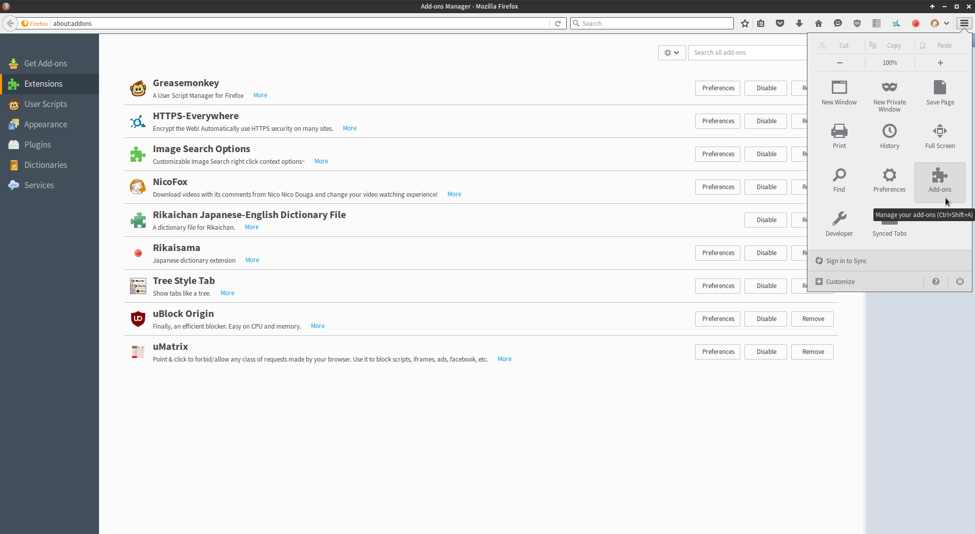 After installing both of the above, open Firefox, make your way over to the add-ons management page, locate the Rikaisama add-on, and hit the "Preferences" button to open up the Rikaisama options window.