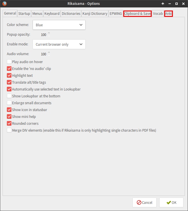 We are interested in two tabs here: "Clipboard & Save" and "Anki".
