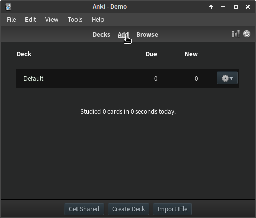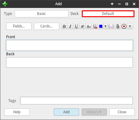 Once the deck has been created, click on it to select it, then press the "Add