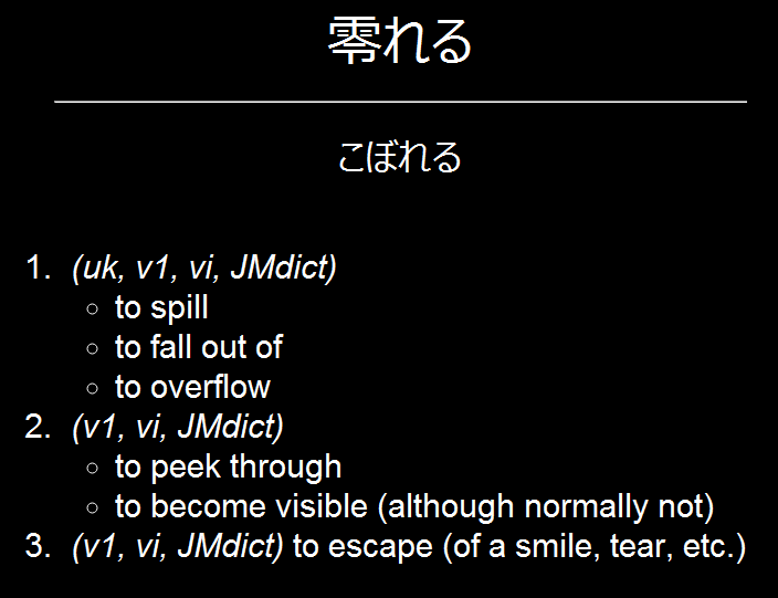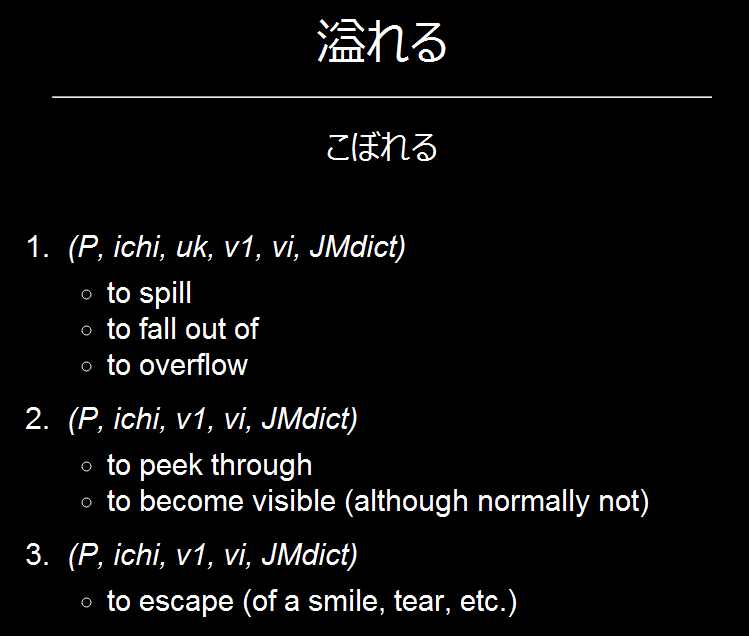 • The word written in kanji, with accompanying furigana.