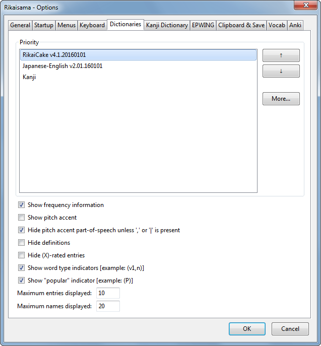 ※ Yomichan - (Firefox & Chrome) - A browser add-on like Rikaisama which allows the user to hover over words in order to see their meanings. By default, its behaviour is quite different from Rikaisama's, though it can be configured to behave in a similar manner by disabling the "Middle mouse button scans" option and setting the "Scan modifier key" to "None" (it is recommended if you do this to set the "Popup offset" option to either 0 or 1, else it will become very difficult to mouse into the popup before it automatically disappears). After installation, you need to import JMDict in Yomichan's settings by clicking the arrow next to the input box under the "Dictionaries" section. Has a companion Anki add-on called AnkiConnect which allows users to automatically add words they hover over to their Anki deck. Can be used as an offline dictionary by clicking the Yomichan browser icon and then clicking the magnifying glass button which appears in the pop-up menu.